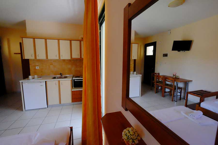 Το συγκρότημα βρίσκεται σε ένα ήσυχο καταπράσινο περιβάλλον, 250 μέτρα από την παραλία και διαθέτει 4 studios πλήρως εξοπλισμένα που μπορούν να φιλοξενήσουν έως και 3 άτομα, όπως επίσης και δύο δυάρια, ιδανικά για οικογένειες.Σε απόσταση αναπνοής από τα studio μας θα βρείτε σούπερ μάρκετ, στάσεις ΚΤΕΛ, ψαροταβέρνες, cafe, beach bars, νεροτσουλήθρες, μανάβικα, αρτοποιεία, είδη εξοχής και θαλάσσης και πολλά άλλα.