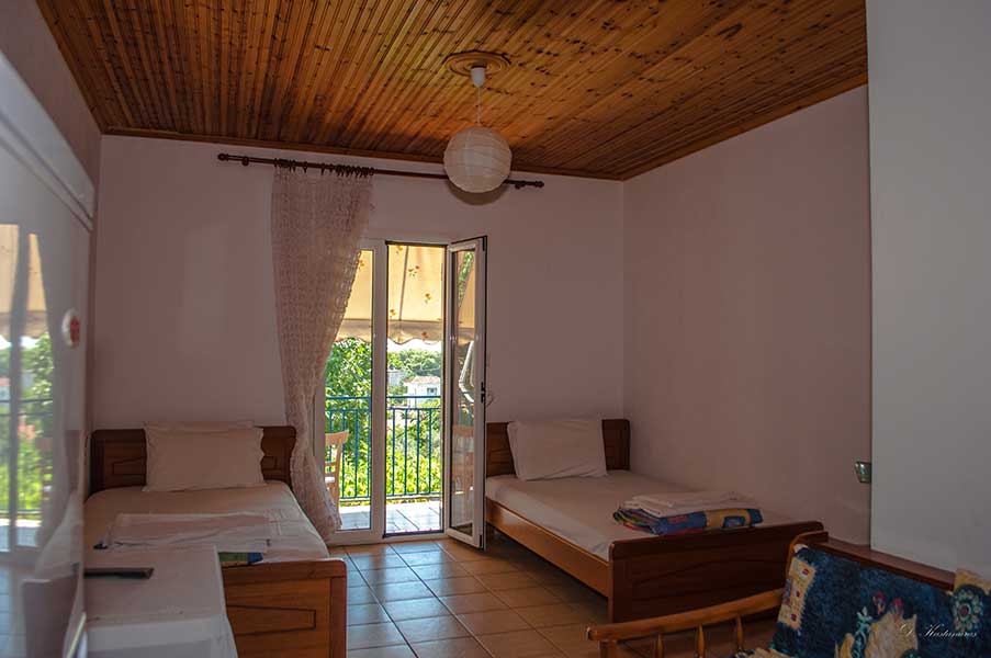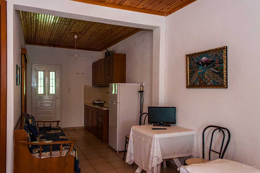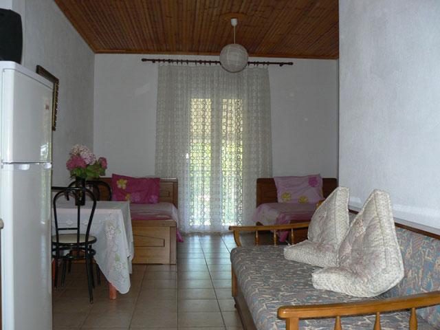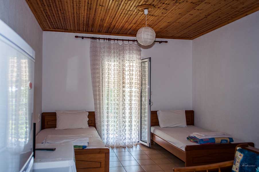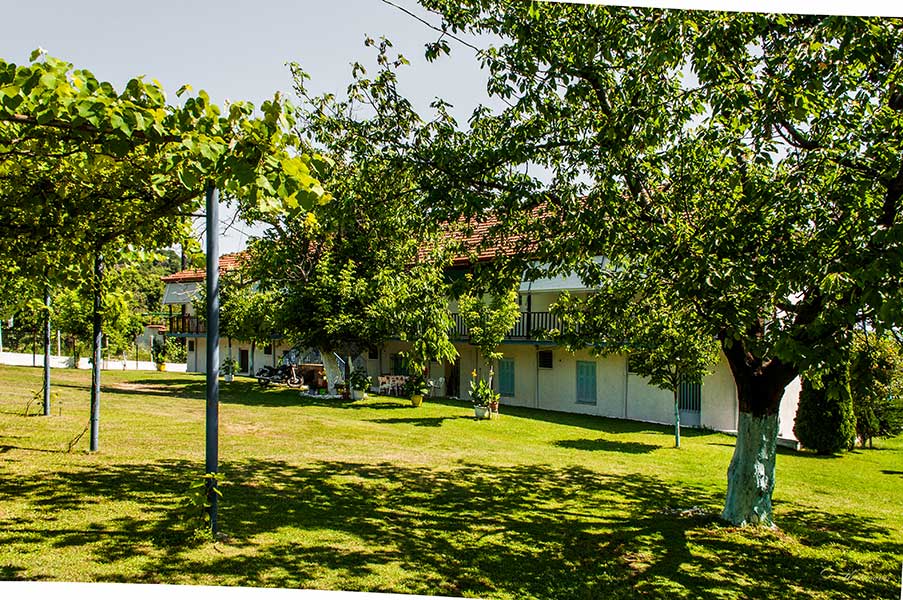 Χαρείτε τις διακοπές σας στο φιλόξενο κτήμα μας, στην καταπράσινη έκταση των τριών στρεμμάτων που περιβάλλει τα διαμερίσματα μας. Μακριά από το δρόμο, σε περιφραγμένο χώρο, τα παιδιά θα χαρούν την παιδική χαρά ή απλά το χώρο για να τρέξουν και να παίξουν και εσείς την παρέα σας κάτω από την κληματαριά, ή τη θέα της θάλασσας. Εκμεταλλευτείτε τον πετρόχτιστο φούρνο για να ψήσετε το φαγητό σας ή την ψησταριά (μπάρμπεκιου) για το βραδινό σας.Άνετα δίκλινα διαμερίσματα, 250μ από τη θάλασσα, κοντά στην πηγή, με άνετο παρκινγκ, ατομική βεράντα, τηλεόραση, κουζίνα με σκεύη, ψυγείο και μπάνιο.