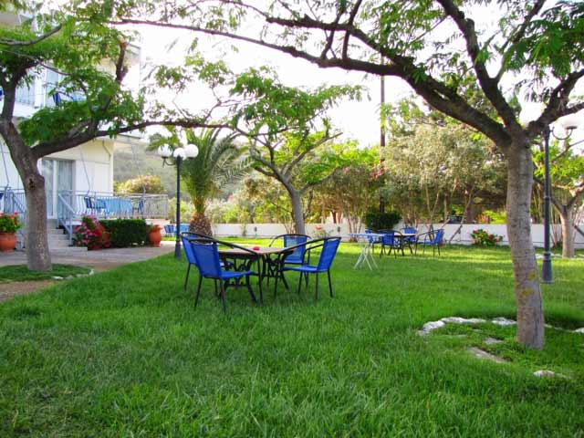 Τοποθετημένο σε μια πανέμορφη και ήσυχη περιοχή, απέναντι ακριβώς από τη θάλασσα, σε μια καταπράσινη έκταση 3 στρεμμάτων, υπόσχεται να σας προσφέρει ειδυλλιακές διακοπές σε ένα καλαίσθητο, φιλόξενο και οικογενειακό περιβάλλον. Η μεγάλη αυλή, με τα ξύλινα παγκάκια και τον εντυπωσιακό της κήπο καλεί τους μεγάλους να απολαύσουν το πρωινό τους καφέ και του μικρότερους να διασκεδάσουν παίζοντας. Ο επισκέπτης μπορεί να ατενίσει από το μπαλκόνι του την καταπληκτική θέα στη θάλασσα, να γευτεί το μαγευτικό συνδυασμό του πράσινου των βουνών και του γαλάζιου του αιγαίου, να ξεφαντώσει στα κοντινά bar, να χαρεί ατέλειωτους φυσιολατρικούς περιπάτους και να πραγματοποιήσει την αγαπημένη του ποδηλατάδα.