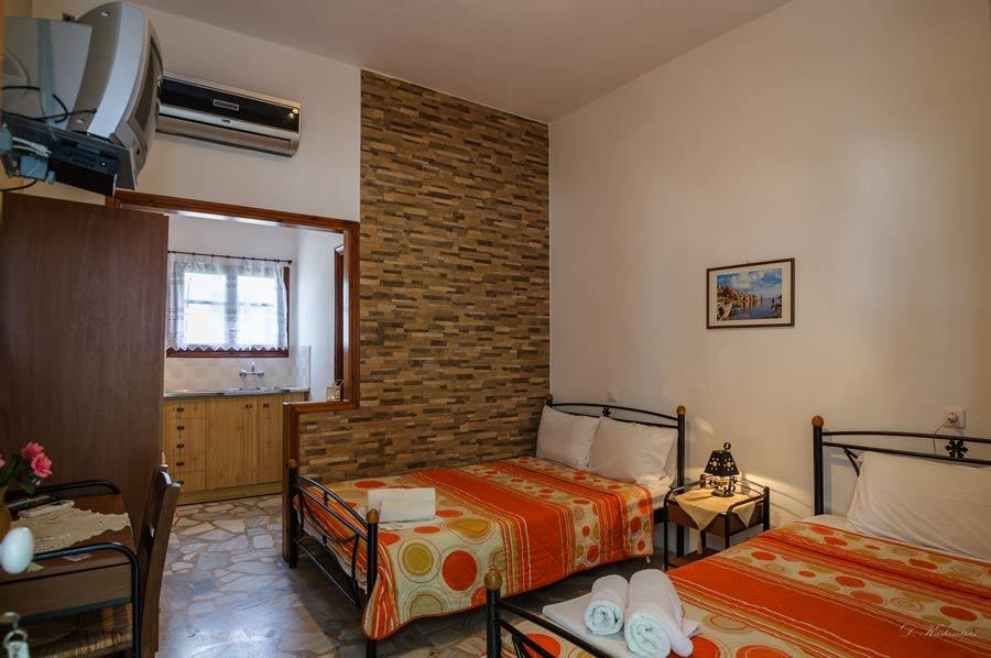 Στο κέντρο της Βελίκας και λίγα μέτρα (10) απο τη θάλασσα, μπορείτε να απολαύσετε της διακοπές σας σε ένα φιλικό, οικογενειακό περιβάλλον.Οι γκαρσονιέρες μας είναι πλήρως εξοπλισμένες με A/C, TV, σίδερο, πιστολάκι και κουζίνα με ψυγείο και κουζινικά σκεύη.